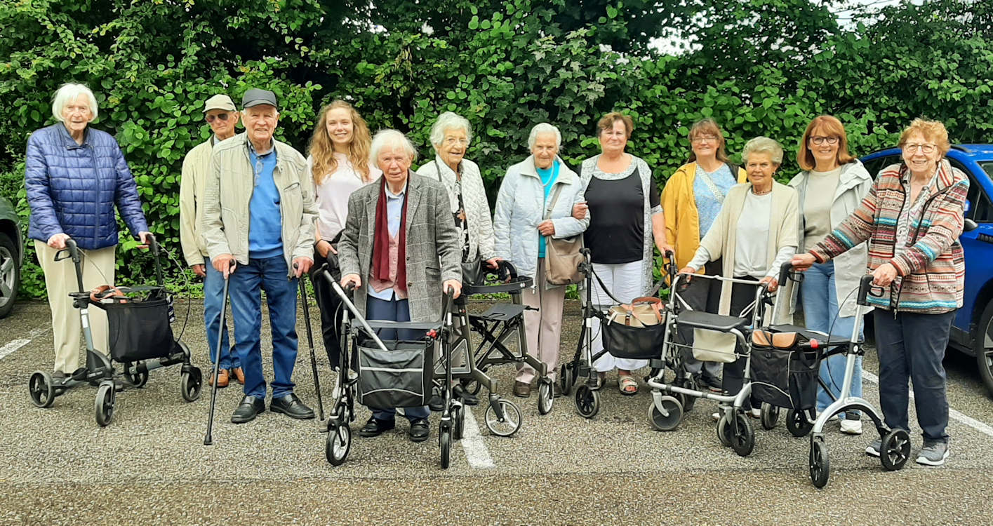 Obwohl das Wetter regnerisch war und ein Besuch des Rosengartens sprichwörtlich ins Wasser gefallen war, ließen sich die Ausflügler die Laune nicht verderben. Nach dem ausgedehnten Kaffeeklatsch wagten sie sich trotzdem auf einen kleinen Spaziergang und genossen die frische Luft und die gemeinsame Zeit im Freien.