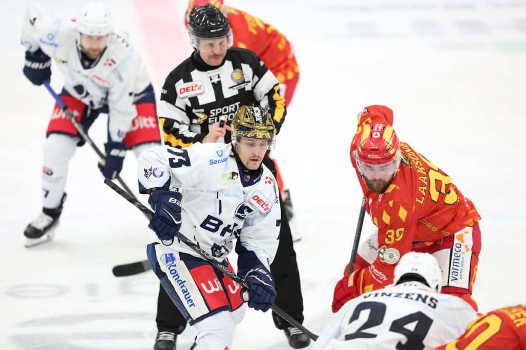 Bereits zu Beginn der Partie gerieten die Hausherren in Unterzahl: Nicolas Appendino musste wegen Behinderung vom Eis. Die Blue Devils nutzten das Powerplay effektiv. Nach einer Kombination über Tomas Rubes und Manuel Edfelder traf Tommy Muck mit einer Direktabnahme zum 0:1. Weiden blieb zunächst spielbestimmend. Noah Samanski setzte zweimal zum Abschluss an – der zweite Versuch landete über Cedric Schiemenz zum 0:2 im Tor.