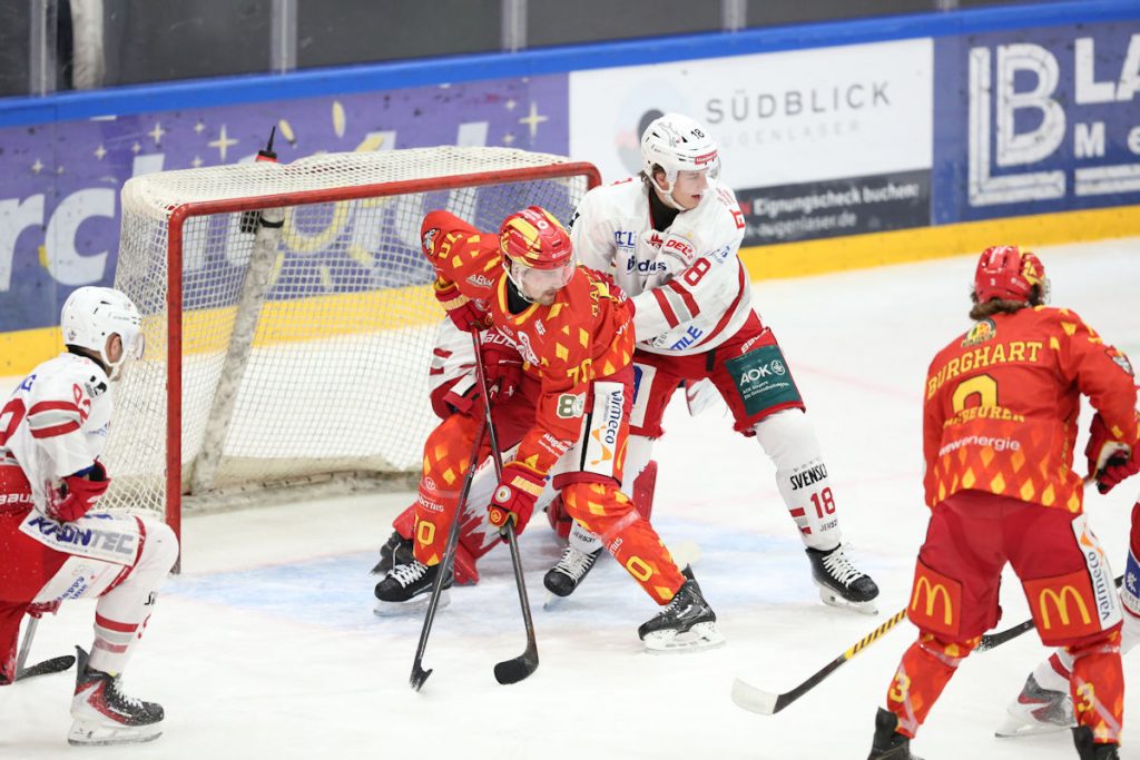 Ein Fehler im Spielaufbau brachte jedoch in der 47. Minute die erneute Führung für Regensburg: Donat Peter nutzte eine Unachtsamkeit eiskalt zum 2:3. Kaufbeuren wackelte, aber Torhüter Cody Porter bewahrte sein Team vor Schlimmerem.