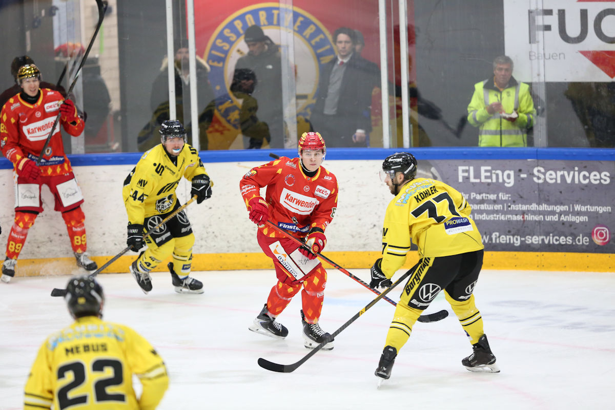 Nachdem Max Oswald die Joker in der 27. Minute mit einem Powerplaytor auf die Anzeigentafel brachte, war in der Folge sogar mehrfach der Ausgleichstreffer möglich. Wie schon in Landshut konnten die Allgäuer jedoch auch dabei ein fünf gegen drei Powerplay nicht nutzen. Danach ging es für die Joker bergab, und die Moral der Mannschaft schien gebrochen. Kaum waren die Kaufbeurer wieder komplett, erhöhte Max Newton den Spielstand in der 35. Minute auf 1:3. Eine weitere Strafzeit gegen den ESVK stellte das Ergebnis dann auf 1:4. Nutznießer war Mathew Santos in der 37. Spielminute. Sekunden zuvor hatte Tyson McLellan bei einem Unterzahlkonter allein vor Felix Bick einen möglichen ESVK-Treffer liegen lassen. Nur 39 Sekunden später war die Messe dann endgültig gelesen: Ex-Joker Max Hops durfte sich ebenfalls in die Torschützenliste des zweiten Drittels eintragen. So ging es für die Joker mit einem satten 1:5-Rückstand in die zweite Pause, nachdem sie bis zur 33. Minute noch Chancen auf einen Spielstand von zwei zu zwei hatten. Drei Gegentore in gut vier Minuten, das kannte man ja schon vom ersten Aufeinandertreffen der beiden Teams in Krefeld.