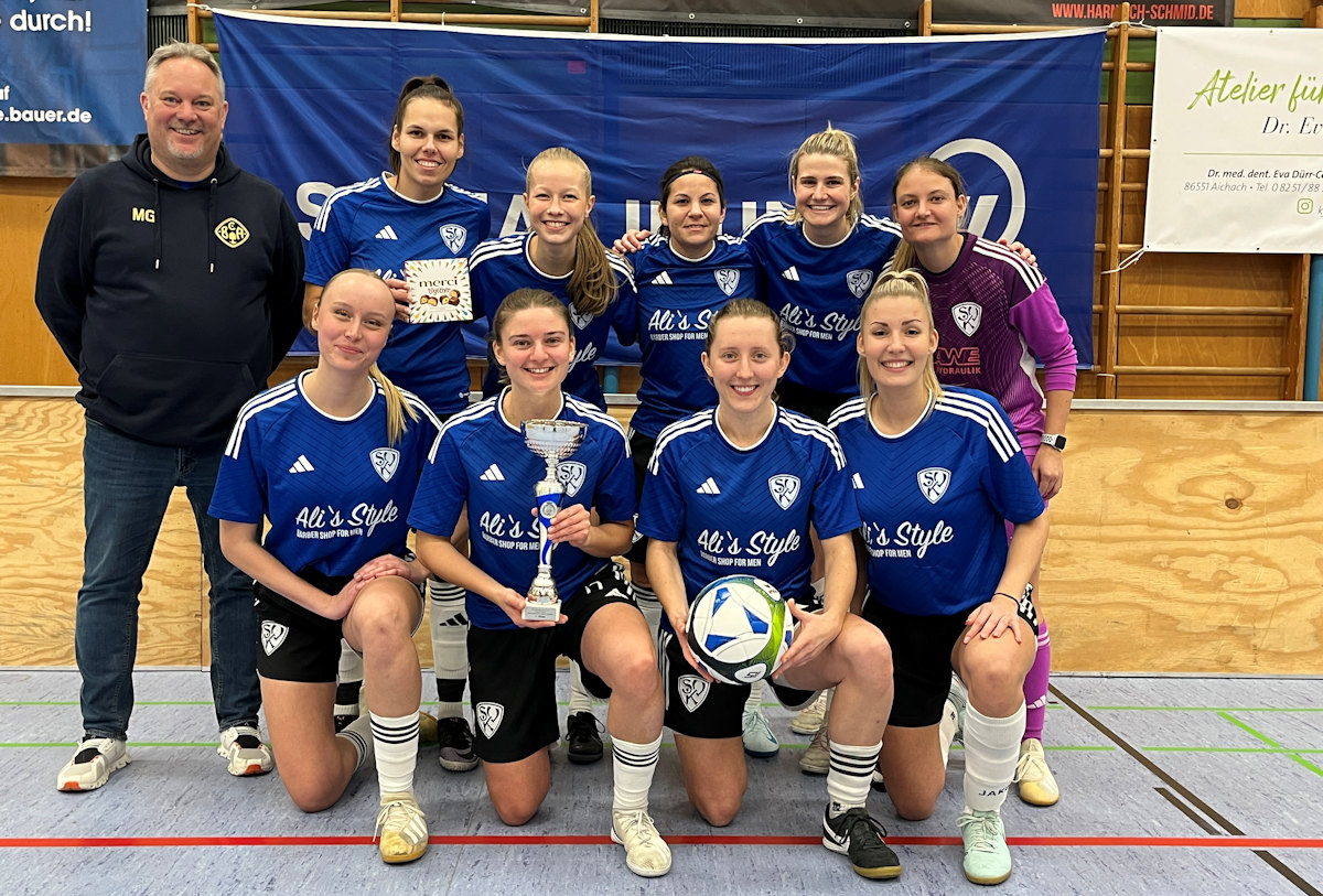 Beim Signal Iduna Weihnachtscup der Damen am Sonntag, den 21. Dezember, in der Vierfachturnhalle am Gymnasium Aichach feierten die Damen der SpVgg Kaufbeuren einen verdienten Turniersieg. Das Team war kurzfristig für den TSV Pfersee Augsburg eingesprungen und überzeugte über den gesamten Turnierverlauf mit Einsatz, Teamgeist und großem Siegeswillen.
