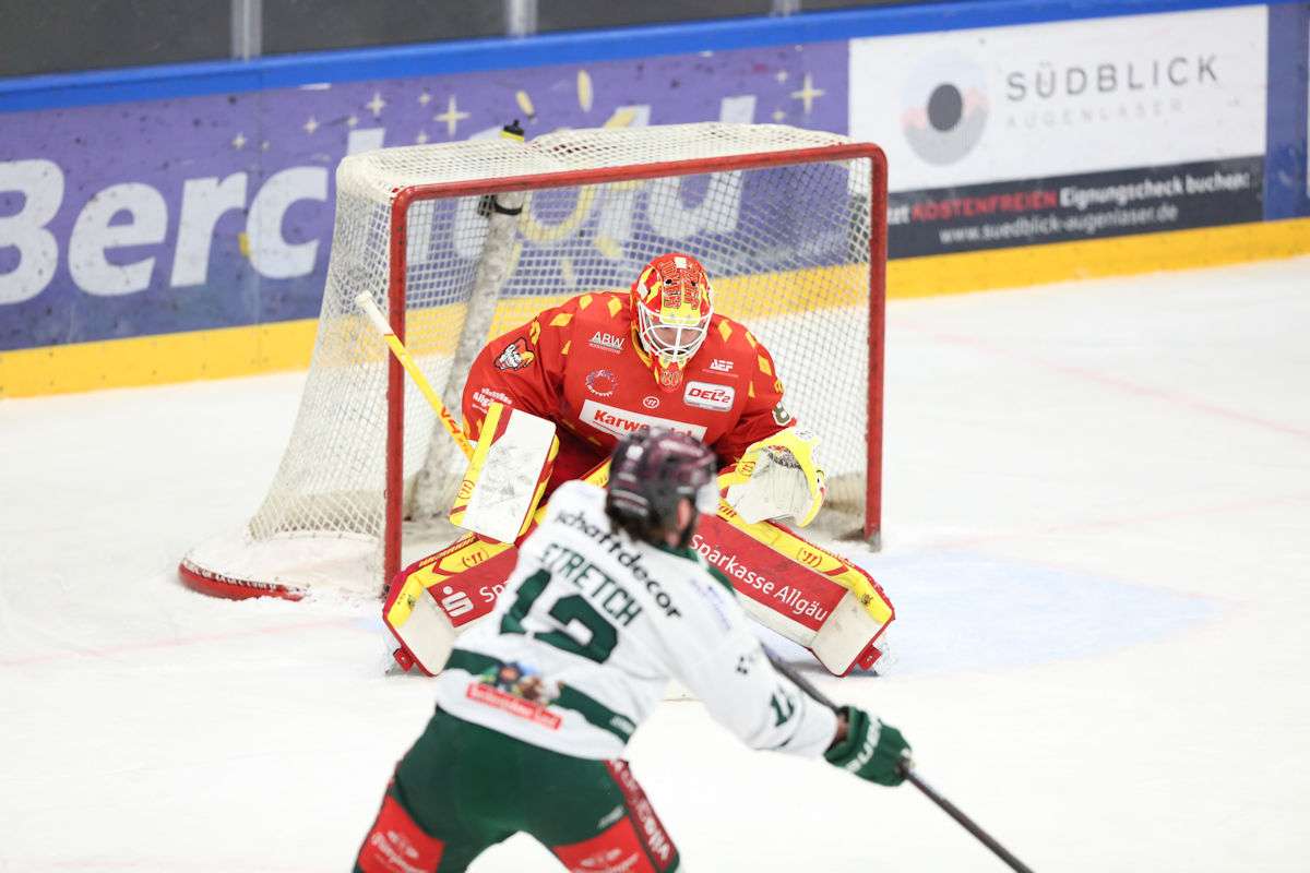 Leif Carlsson brachte zu Beginn des dritten Drittels Daniel Fießinger für Cody Porter, der nach fünf Gegentreffern in 40 Minuten wohl mehr als bedient gewesen sein dürfte. Daniel Fießinger stand dann die gesamte Zeit im Mittelpunkt und verhinderte im Minutentakt Großchancen der Oberschwaben, die mit den Jokern teils Katz und Maus spielten. Unterbrochen wurde der Offensivwirbel der Ravensburger in der 46. Minute, als Maximilian Hadraschek nach einem Pass von Philipp Krening alleine vor Ilja Sharipov auftauchte und zum 5:2 traf. Die Hausherren schafften es immer wieder, die Kaufbeurer in ihrer Zone festzuspielen, und hielten somit den Druck auf das Tor von Daniel Fießinger konstant aufrecht, wodurch sie zu weiteren Chancen kamen.