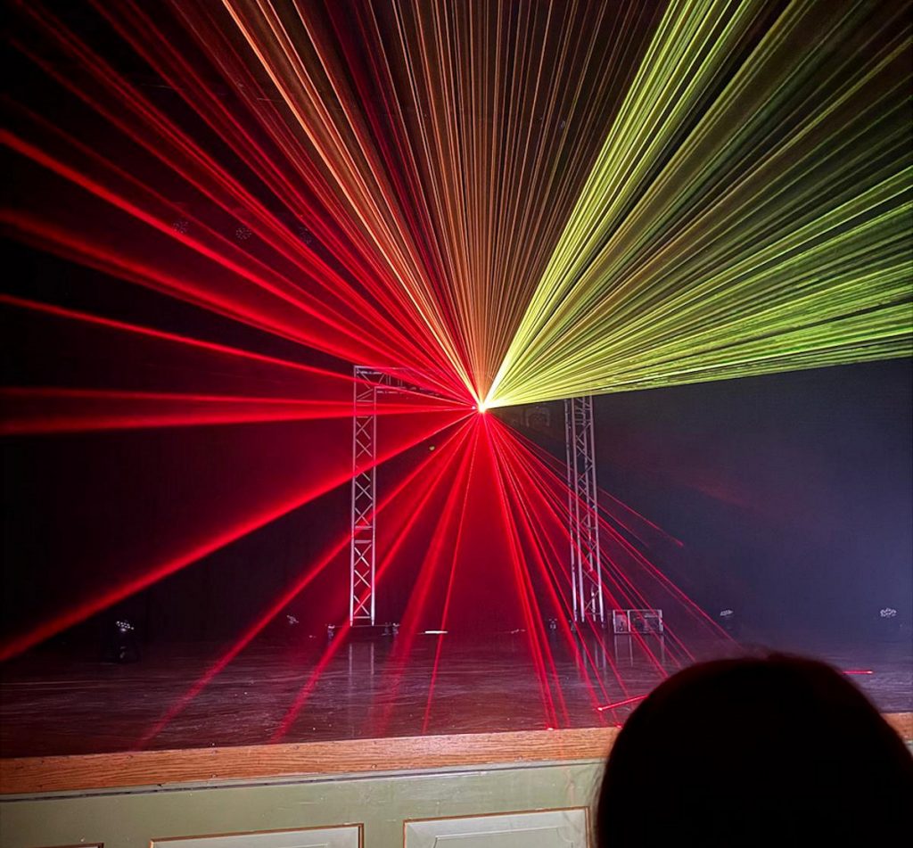 Schon im Eingangsbereich begann das ungewohnte Erlebnis: Neonröhren leuchteten in den blauen Parteifarben, die Eingangstür wurde für jeden Gast persönlich geöffnet. Dahinter ein abgedunkelter Saal, künstlich vernebelt, grelle Lichtblitze, die zuckten, Laserstrahlen, die durch den Raum schnitten. Dazu wummernde Bässe und treibende Technoklänge. Ein Auftritt, der eher an ein Club-Event als an eine politische Veranstaltung erinnerte.