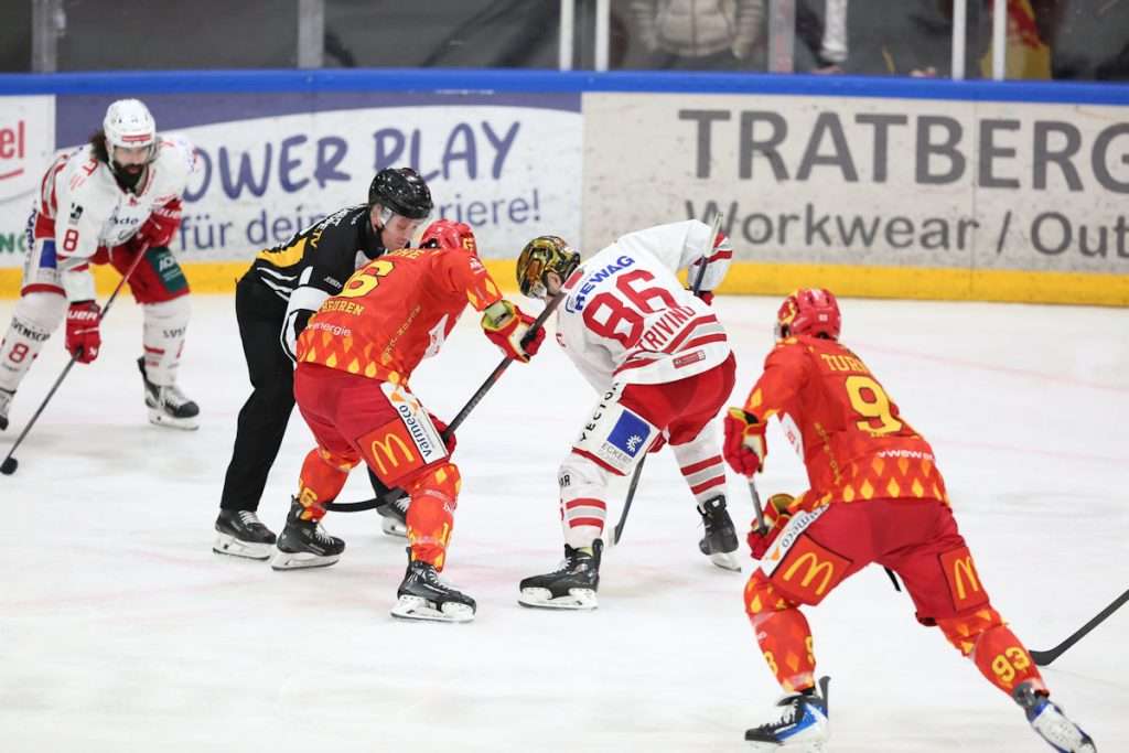 Was im zweiten Abschnitt mit dem ESVK passierte, war nahezu sensationell. Die Joker mussten in der 25. Minute ein Unterzahlspiel überstehen, in dem die Eisbären mehrfach die Chance auf den Führungstreffer hatten. Doch entweder war Cody Porter zur Stelle oder ein Kaufbeurer Verteidiger, wie zum Beispiel Bernhard Ebner, der eine Scheibe noch von der Linie kratzte. Dieses Penalty-Killing schien beim ESVK Kräfte freizusetzen. Binnen zwei Minuten stellten die Joker den Spielstand von 1:1 auf 4:1. Den Anfang machte in der 31. Minute Travis Turnbull. Der Neuzugang der Joker reagierte nach einem Sololauf von Tyson McLellan am schnellsten, als nach seinem Abschlussversuch die Scheibe von einem Regensburger Verteidiger vor dem Tor vertändelt wurde. Nur 72 Sekunden später war es Alec Zawatsky, der frei vor Konrad Fiedler zum 3:1 einnetzen konnte. Die perfekte Vorarbeit kam dabei von Vadim Schreiner. Dem nicht genug, traf dann auch noch Pavel Nikitins: Bei einer angezeigten Strafe gegen die Eisbären vernaschte der Youngster den Regensburger Schlussmann gekonnt und stellte 47 Sekunden nach dem 3:1 den Spielstand auf 4:1. In der 35. Minute mussten die Allgäuer dann ein weiteres Mal in Unterzahl agieren und überstanden diese Phase wieder ohne Gegentor. Ein eigenes Powerplay nach 39 Minuten nutzten die Joker schließlich für ihren fünften Treffer. Klausi Heigl brachte die Scheibe mit einer schönen Einzelaktion in die Offensivzone und fand dabei den im Slot freistehenden Travis Turnbull. Der Deutsch-Kanadier ließ sich diese Chance nicht entgehen und traf mit einem platzierten und harten Handgelenkschuss zum 5:1.
